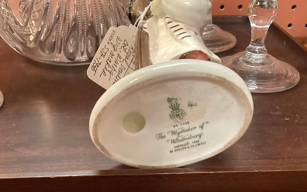 Fabulous vintage Royal Doulton "The Wigmaker of Williamsburg" figurine. The Wigmaker is part of the Royal Doulton 1960's collection of 18th Century personalities called Figures of Williamsburg. Perfect for the collector with a love of beauty, history, and tradition. Measures 7 1/4" tall. Photos are part of the description so please review carefully.