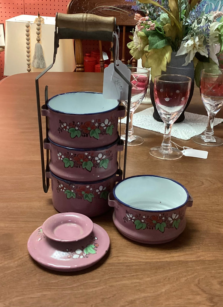Vintage 4pc Stacking Enamel Lunch Pail Set
