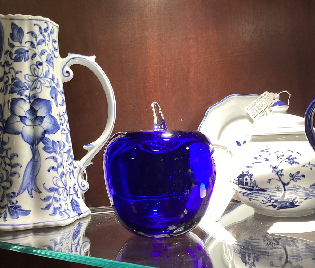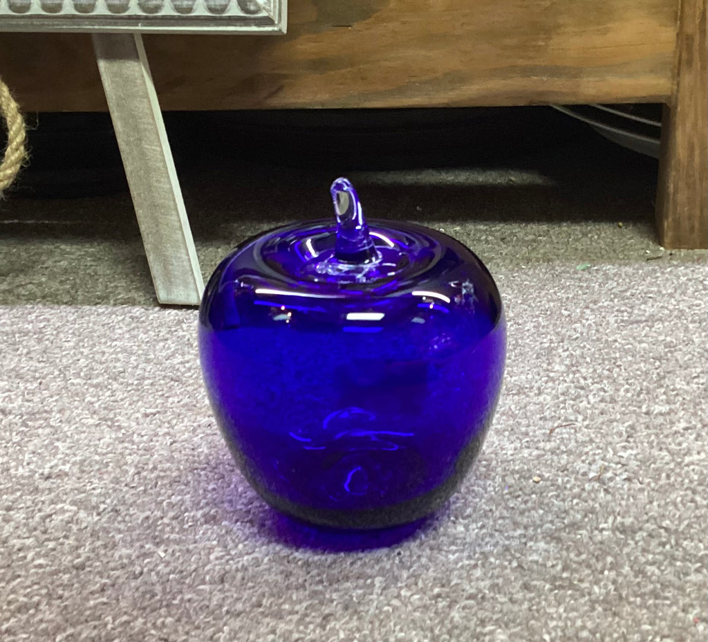 Blenko Cobalt Blue Blown Glass Apple Paperweight
