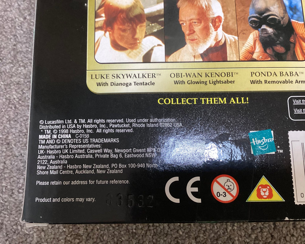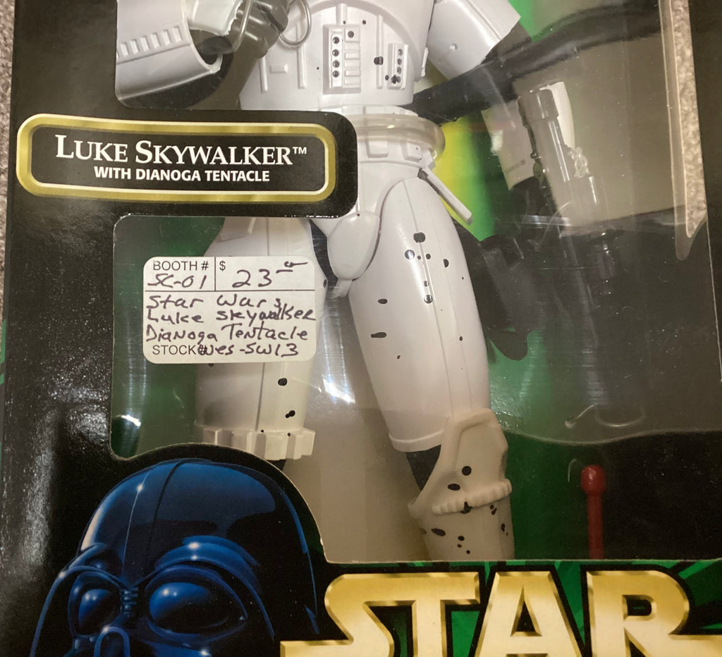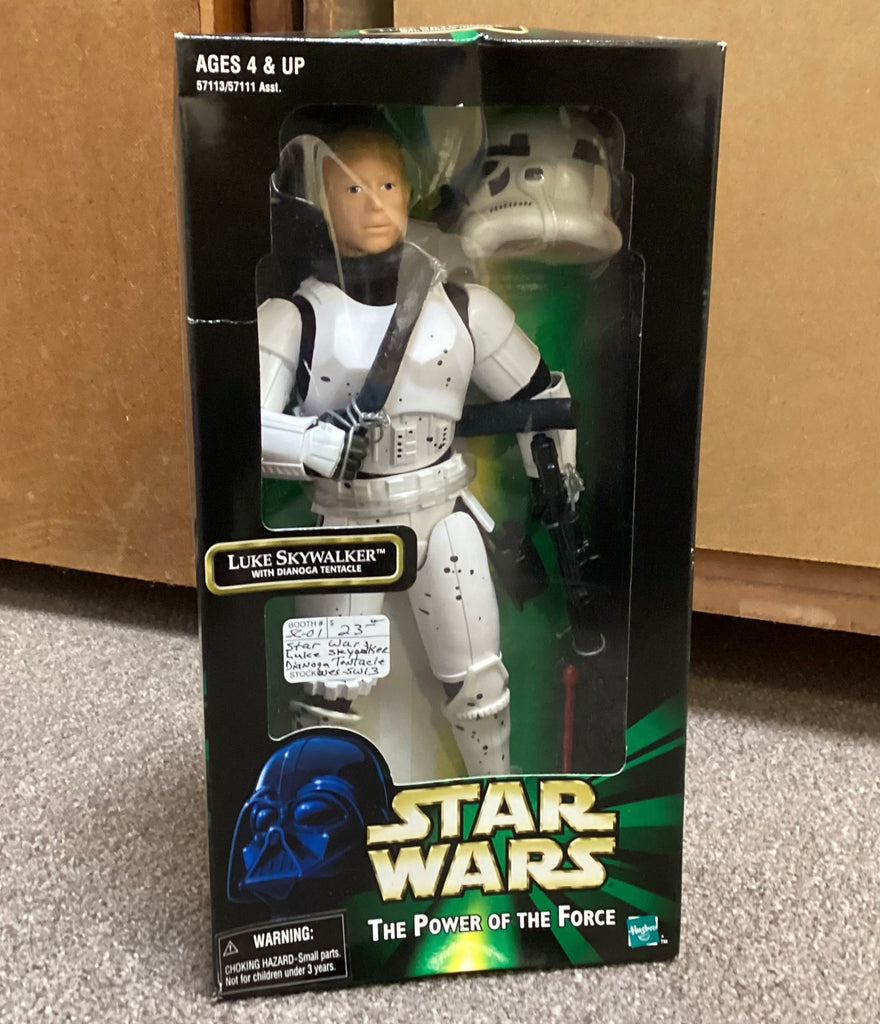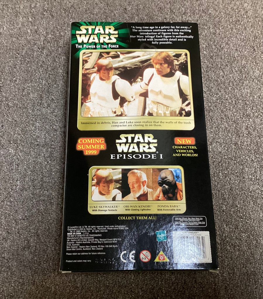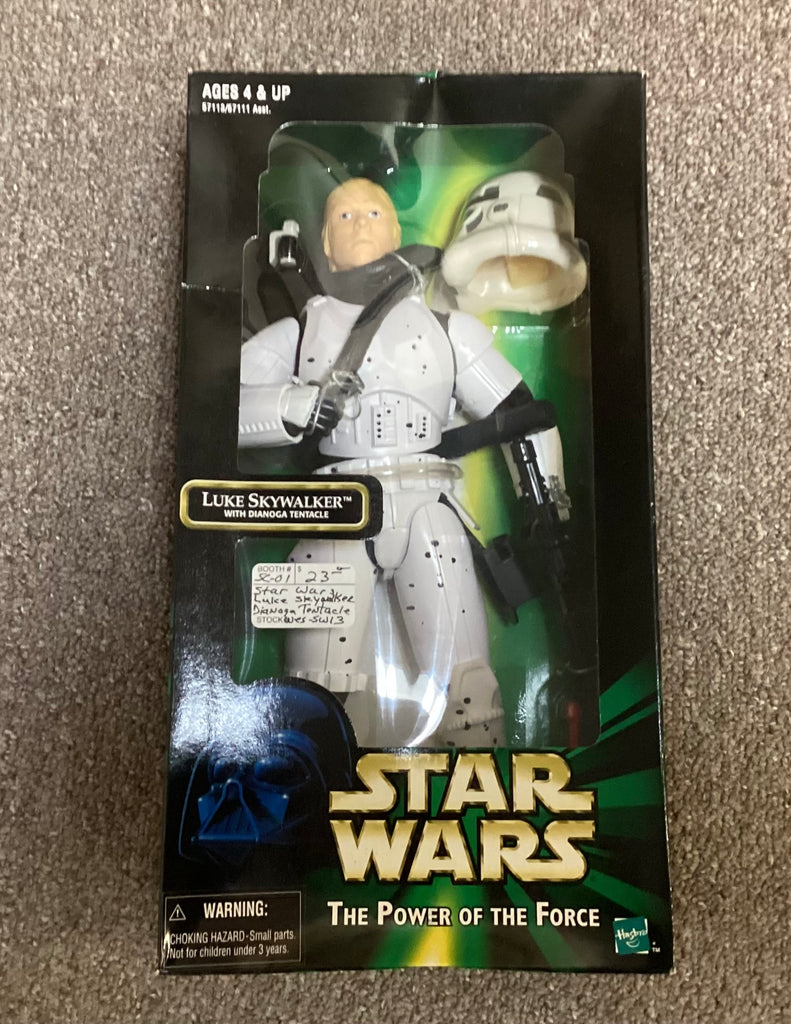 Awesome collectible 1998 Hasbro Star Wars Power of the Force Luke Skywalker with Dianoga Tentacle action figure new in the box. Part of a large Star Wars action figures collection. There is some slight wear to box.